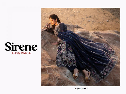 Sirene Pakistani Designer Luxury Embroidered Pure Cotton Lawn Suit - 1143