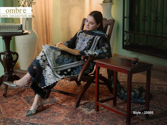 Ombre Pakistani Designer Stylish Hit Embroidered Lawn Suit - 25005