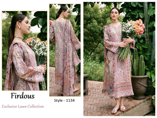 Firdous Exclusive Pakistani Designer Pure Cotton Embroidered Suit - 1134