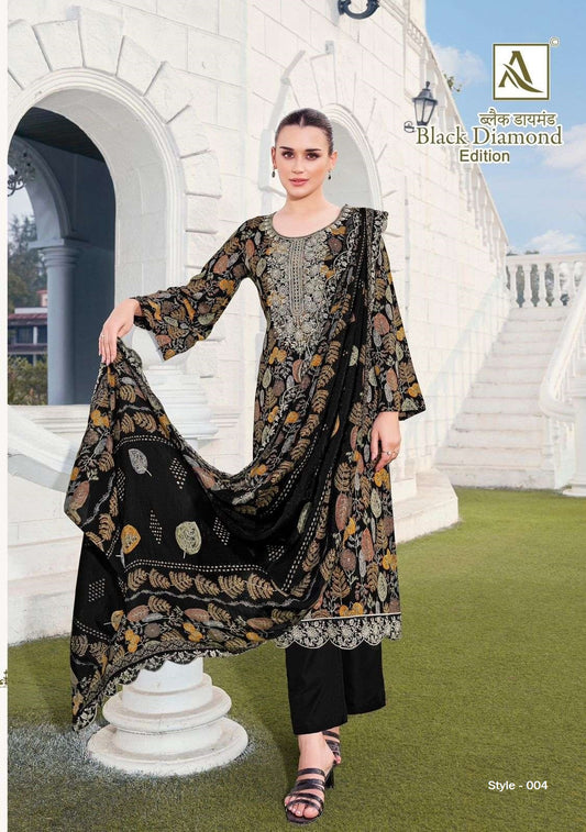 Black Diamond Pakistani Designer Embroidered Rayon Lawn Suit - 004