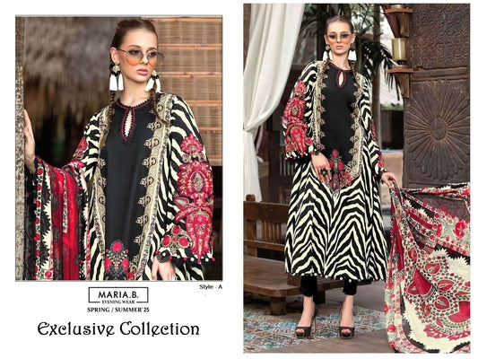 Maria B Pakistani Designer Pure Cotton Embroidered Dress - B