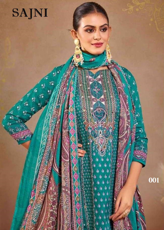 Sajni Pakistani Designer Classic Hit Pure Cotton Embroidered Dress - 001