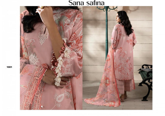 Sana Safina Pakistani Designer Embroidered Pure Cotton Lawn Suit - 1001