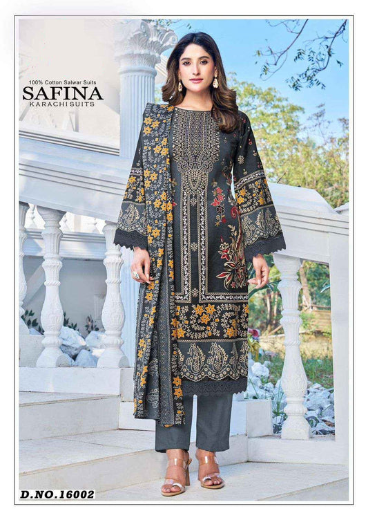 Safina Pakistani Designer Pure Cotton Printed Shalwar Suit - 16003